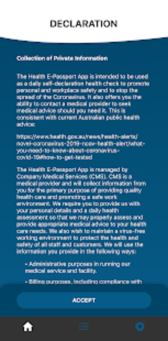 CMS Health E-Passport działa na Androidzie 9.0 lub nowszym. Obecna wersja oprogramowania to 1.0.9 i można ją uruchamiać tylko w angielski.